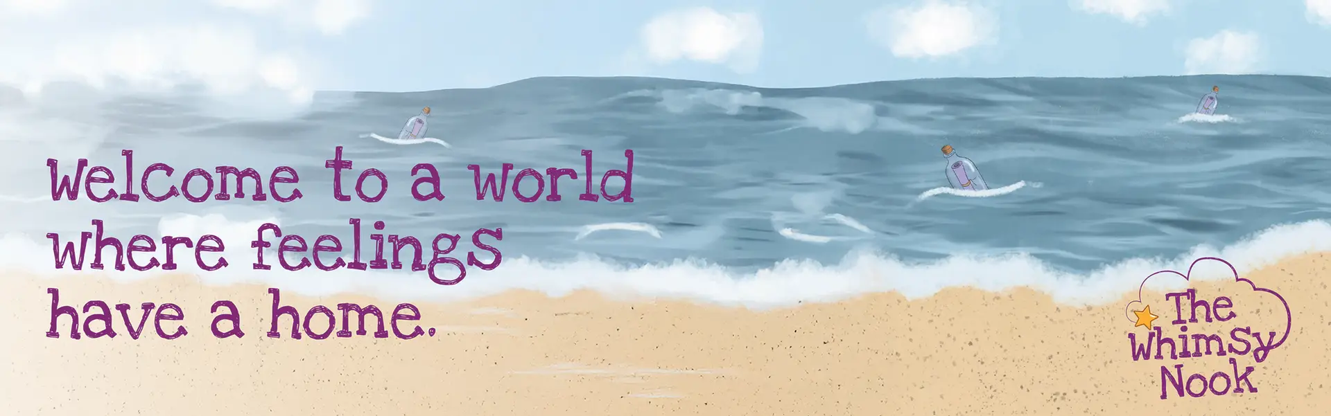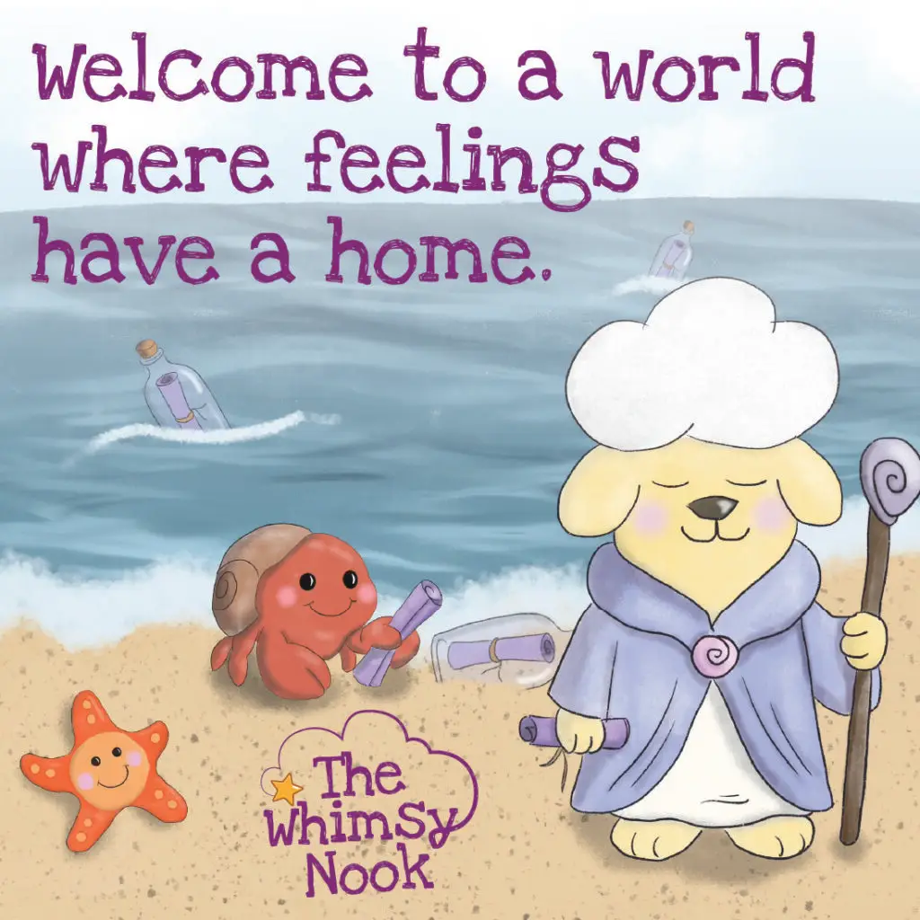 The Whimsy Nook is a gentle, make-believe world created to help children (and their grown-ups!) explore big feelings in small, soft ways. A land where feelings become places to explore, a place to feel like you belong.